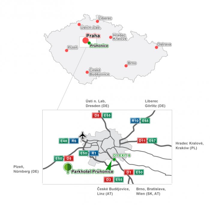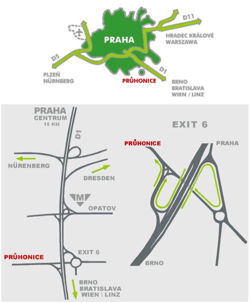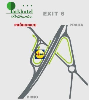 Dálnice D1 Praha - Brno - Vídeň, EXIT 6 Průhonice, směr Průhonice centrum (PARKHOTEL) nebo náměstí